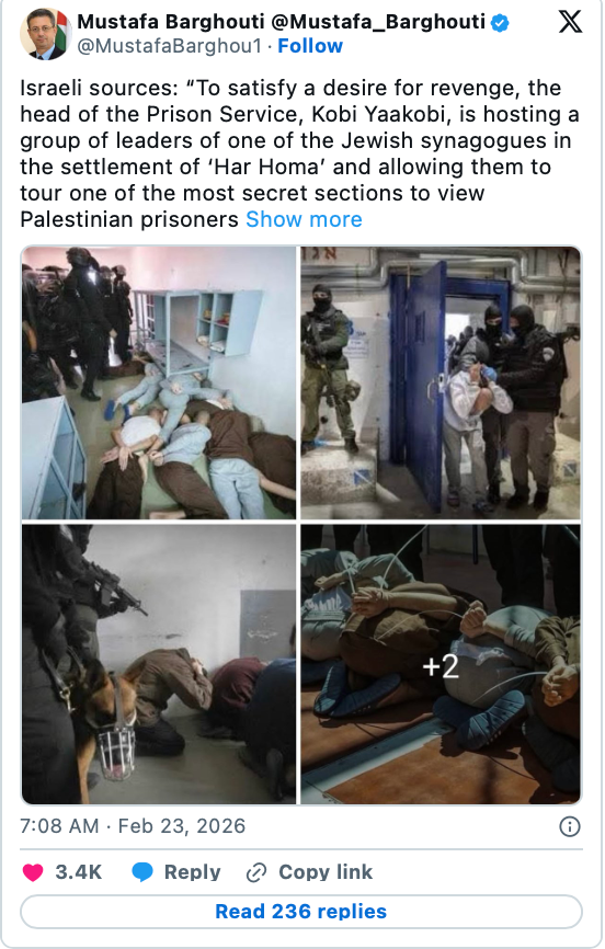 The head of the Israel Prison Service (IPS), Kobi Yaakobi, has invited a group of settlers on a so-called "safari tour" to view Palestinian detainees while they are lying on the floor and handcuffed.